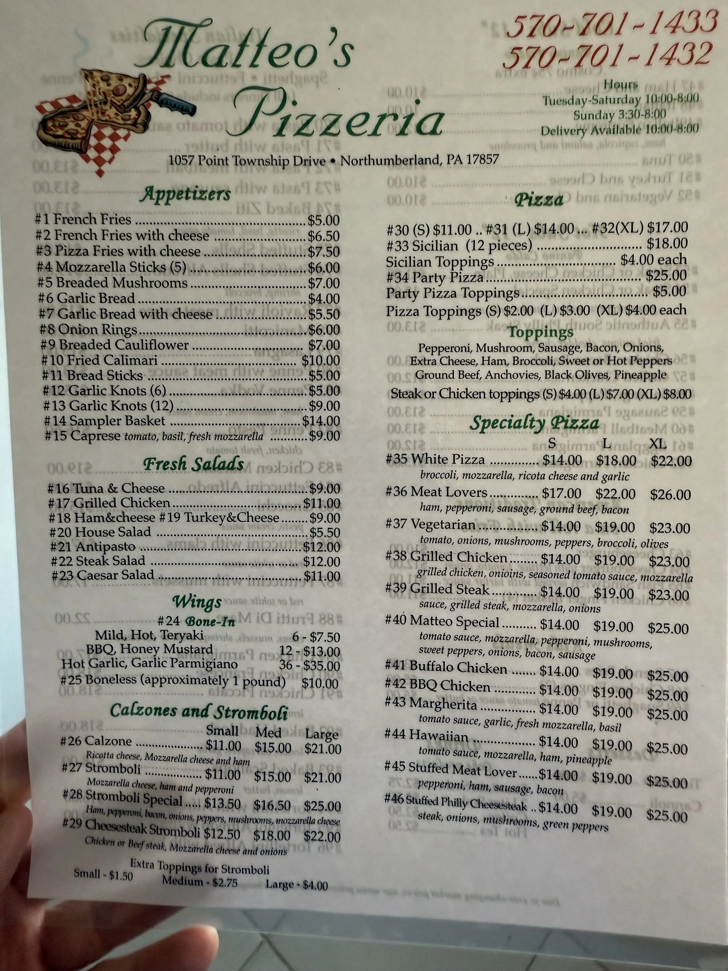 Matteo’s Pizzeria, Northumberland, PA.