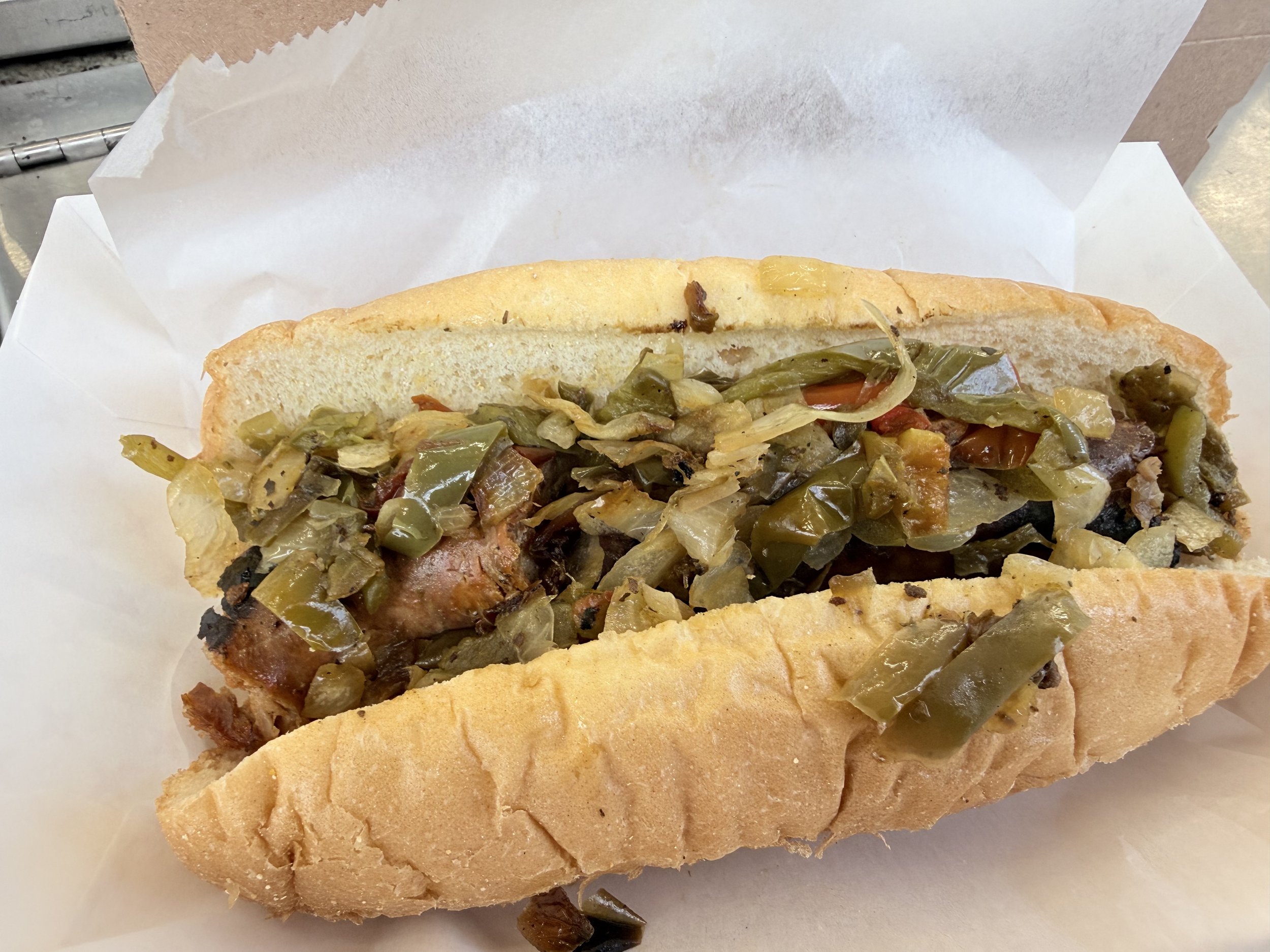 Not very warm and $3 more than other sausage stands. If they changed their bun, it would make a huge difference as well, just too much bun for the sausage.